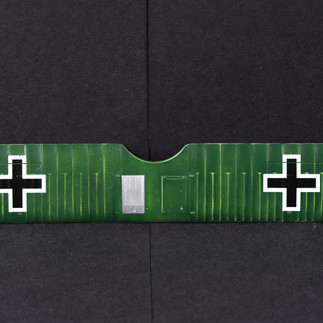 Lastly, I painted the radiator on the top wing. The upper surface was painted with GX-1 (Black) as a base, followed by AK 481 (Polished Aluminium) as the final color. The lower surface received GX-1 (Black), with MC 214 (Dark Iron) brush-painted on top and then polished with a cotton swab.